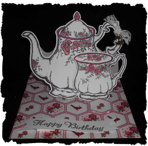 Love the tea pot and cup. I wanted to make a special card so it had to be a easel card. Love those kind of cards.